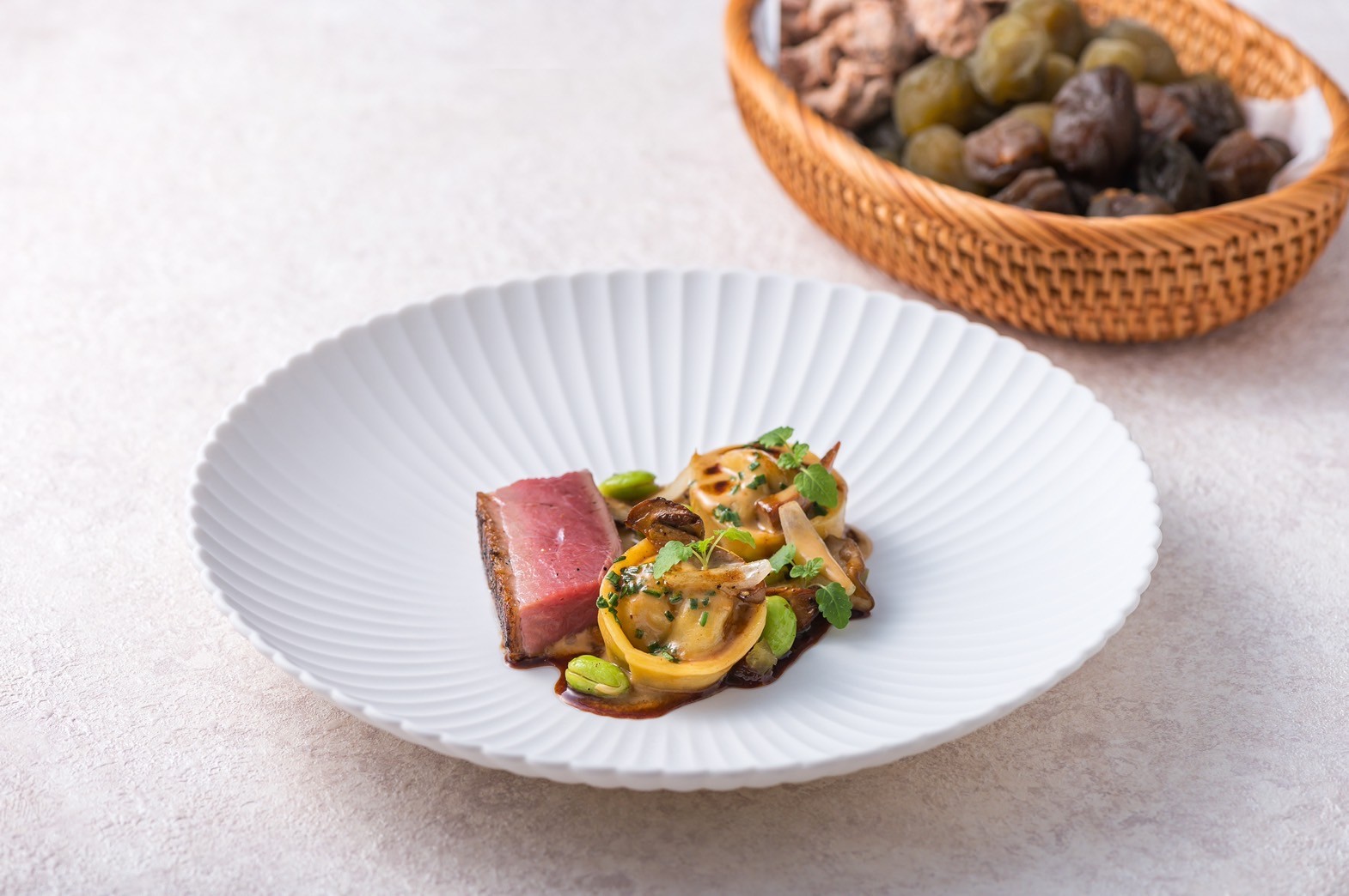吳定祐也將法式傳統鄉村菜紅酒燉牛肉重新演繹呈現,「我們選用極黑和牛的牛小排部位,紅酒高湯燉煮後再用稻草燻烤,保留牛肉香氣。」